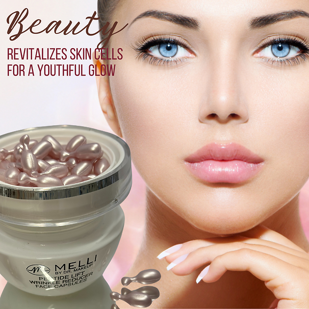 - Peptide lift capsules based on Hyaluronic Acid for reducing wrinkles depth, firming and improving skin texture.