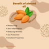 Sweet Almond oil contains the antioxidant vitamin E, acts as a lubricant, hydrating, restoring shine on the skin surface, the soothe and replenish skin which gives the skin a soft and smooth appearance.